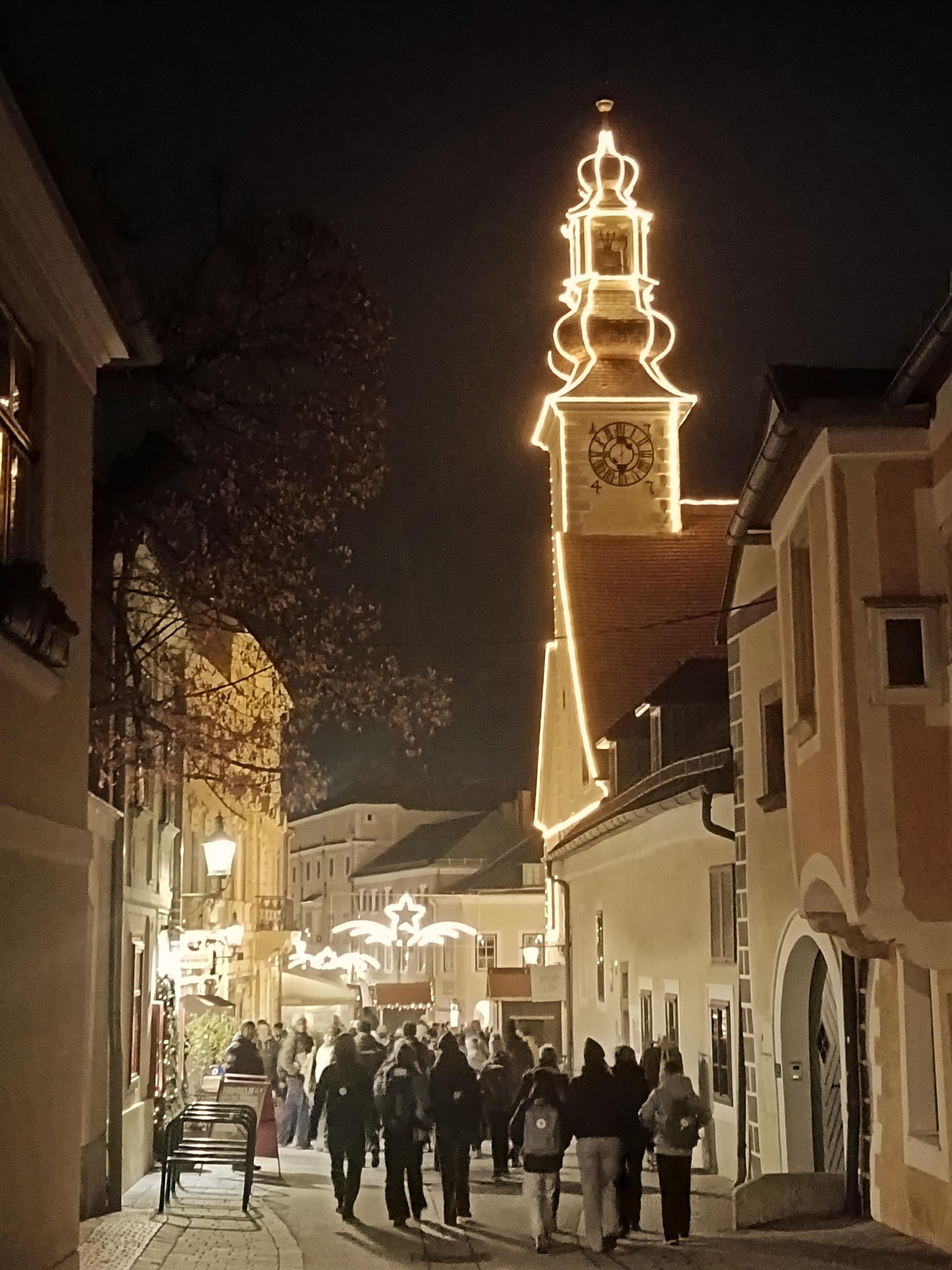 Die diesjährige Adventwanderung führte uns durch die weihnachtlich geschmückte Altstadt von Mödling über das Amphitheater – eine künstliche Ruine, gut versteckt im Wald - zur Burg Lichtenstein, die durch ihre romantische Beleuchtung weithin sichtbar war. Gegenüber befindet sich das Schloss Lichtenstein, nicht minder beeindruckend. Nach einer kurzen Nachtwanderung erreichten wir unser eigentliches Ziel, den Adventmarkt bei St. Othmar, mit kreativem Kunsthandwerk, regionalen Köstlichkeiten und einer Krippe mit lebensgroßen Figuren.